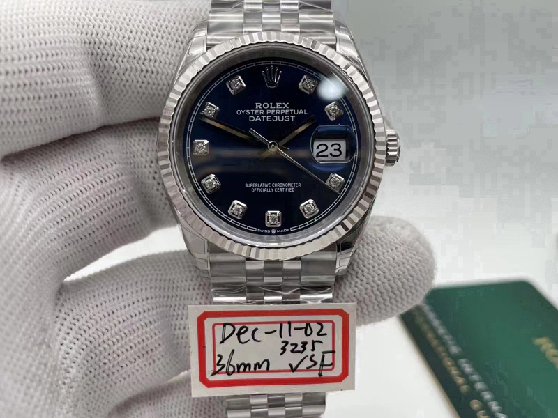 VS厂2020年劳力士日志新品:新版本劳力士m126234-0037钻蓝面日志系列36M,VS厂复刻表劳力士钻蓝面日志搭载丹东3235一体机芯,拥有72小时+储存动能。