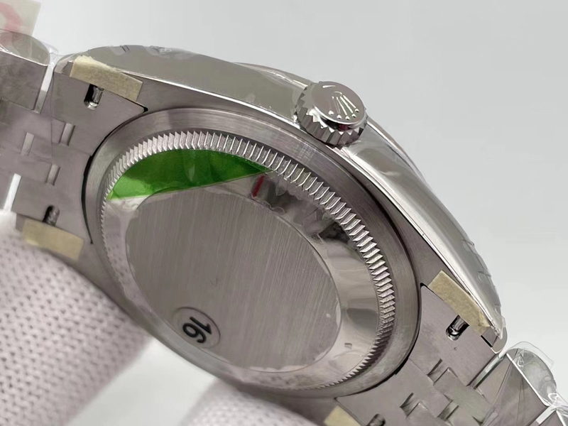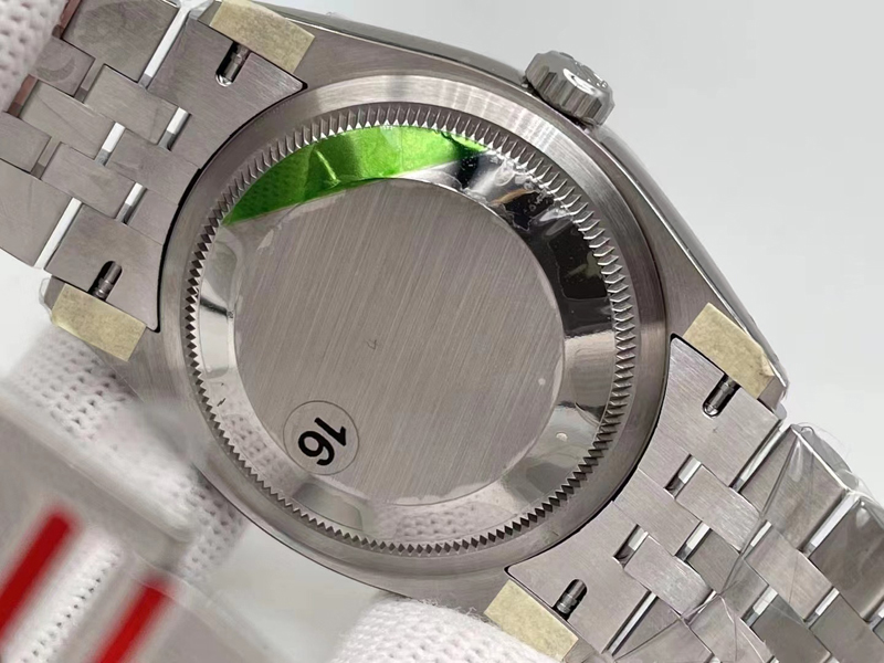 日历梯形窗口阶梯做了亮色处理,小小的地方需要精致的工艺加工,细节可见一斑。还有外观刻字、打磨包括机芯的编码等,都与正品高度一致。