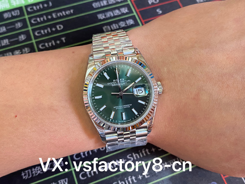 VS厂手表官网2023年新款预告:VS厂劳力士日志绿面丹东3235机芯36M日志型DJ实拍图!
