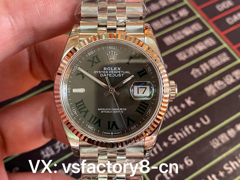 VS厂手表劳力士日志36M表盘“面”好;搭配石板灰,太阳纹清晰细腻,折射出淡雅光泽,隐约而独特,随着腕摆动显不同光泽。