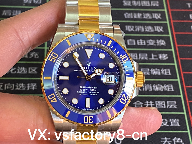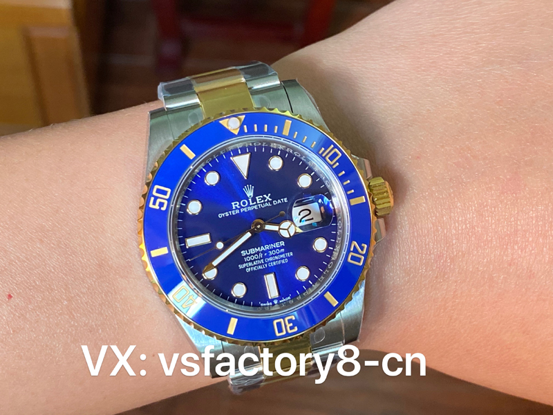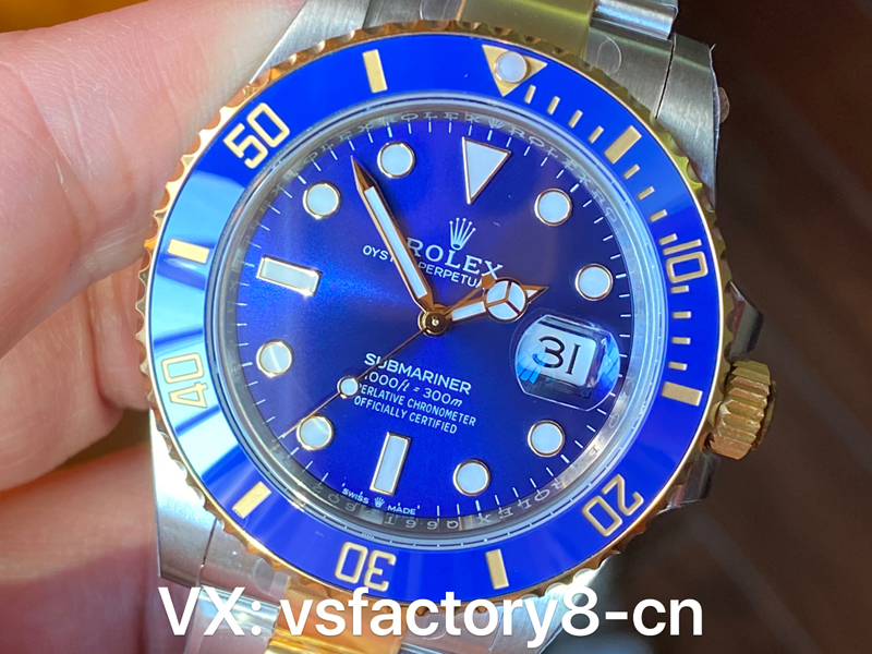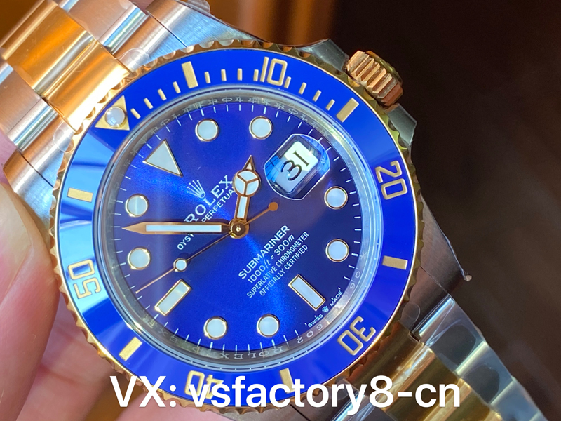 2.VS厂复刻表劳力士41m间金蓝水鬼最新版本夜光珠全新升级版:玻璃清澈见底,温润如玉,夜光珠边缘清晰,优于市场其他任何版本。