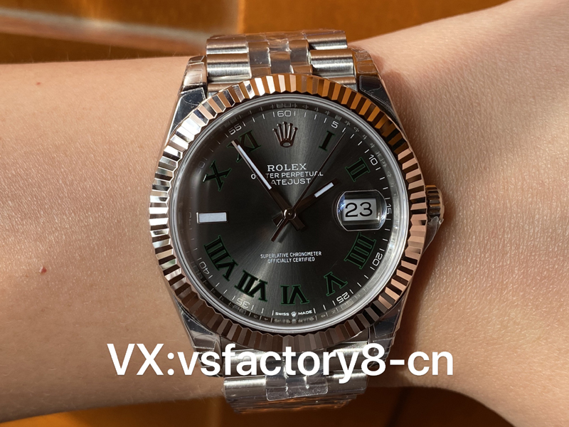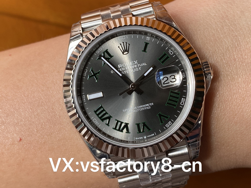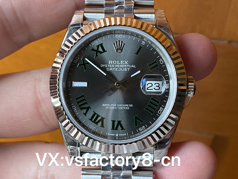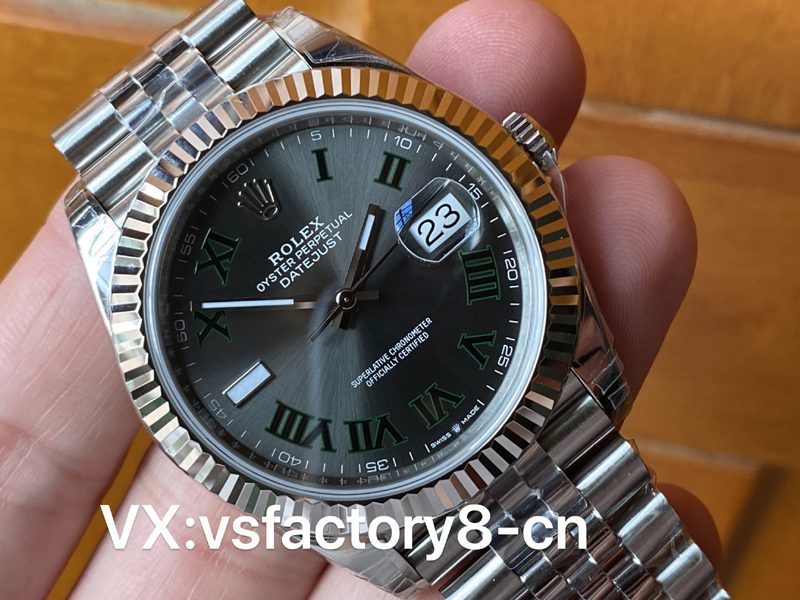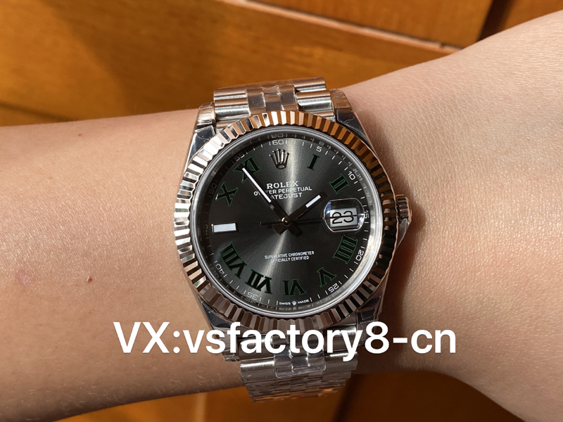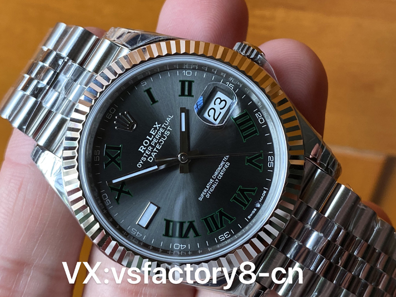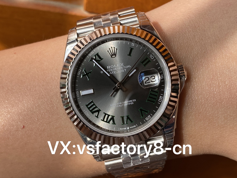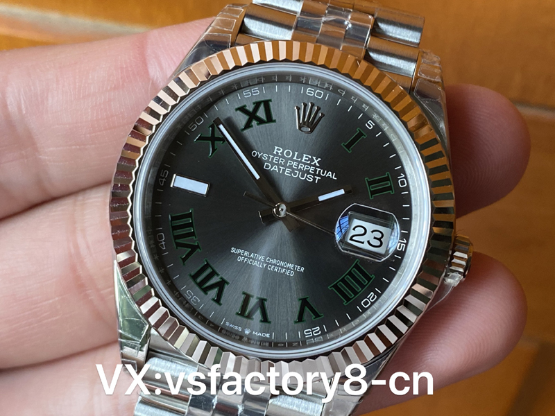 VS厂劳力士绿萝日志41M“面”好,表盘太阳纹清晰细腻,淡雅光泽,隐约而独特,随着手腕摆动显不同光泽,VS厂行业新突破:表盘底色不会泛雾显白。