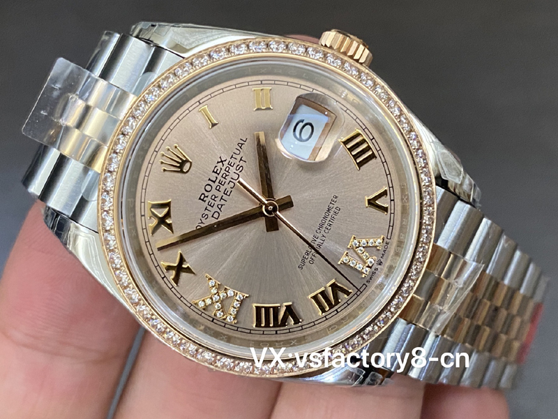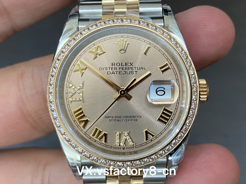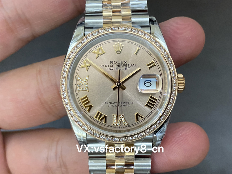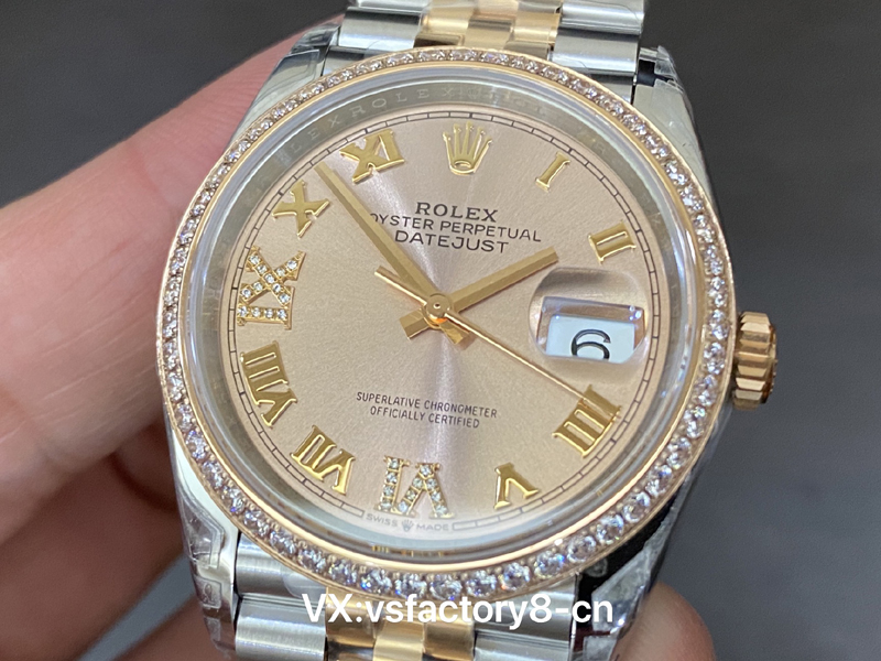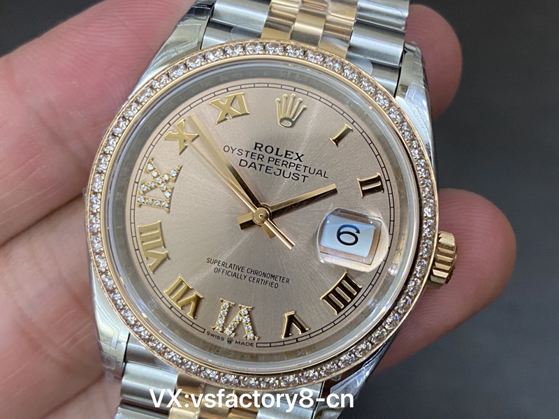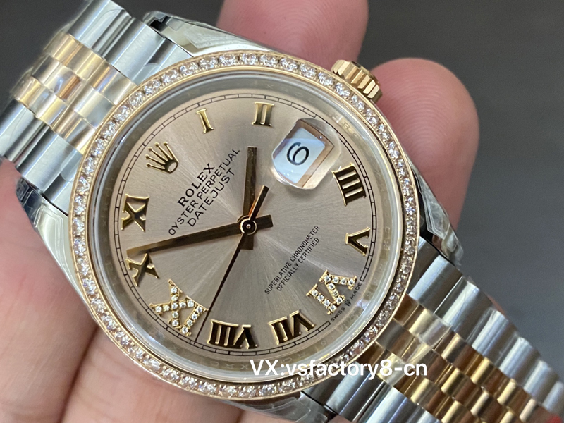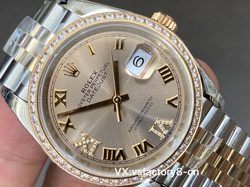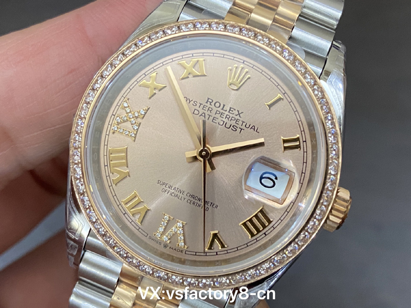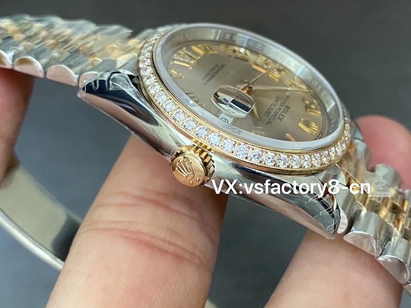 VS厂复刻表劳力士日志钻圈粉面全面按照正品同步一致,并且实施了六点位置和九点位置都跟正品一致采纳钻石,当然VS厂用的是台湾莫桑钻,并一比一罗马数字,不再一眼假和露破绽!