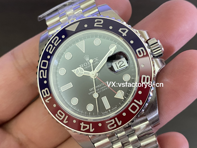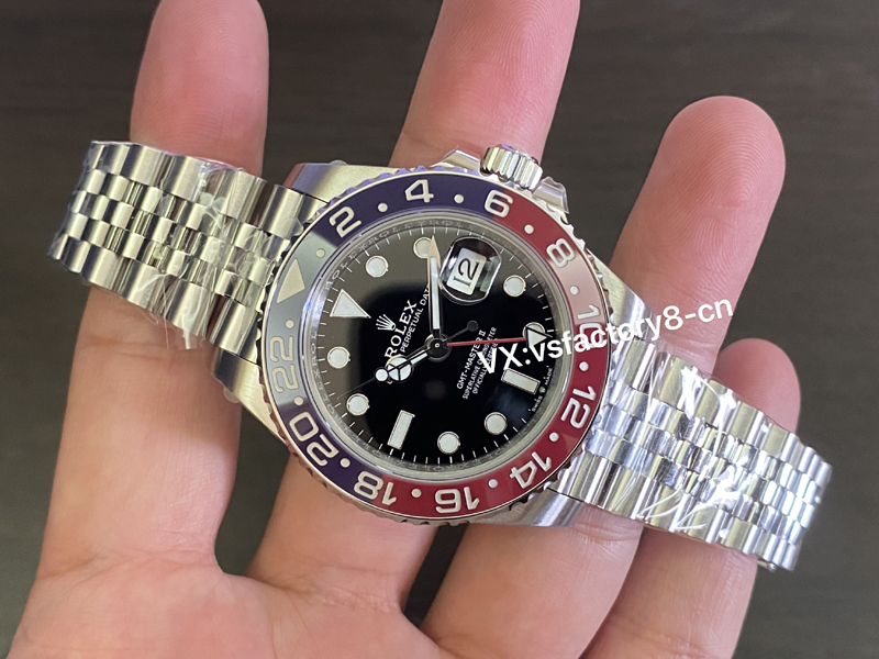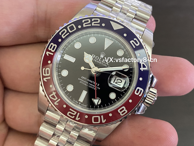 VS厂2025年全新劳力士格林尼治可乐圈在紫外灯照射变色上,红色更加的明显,紫外线照射对于一般人来说可有可无。