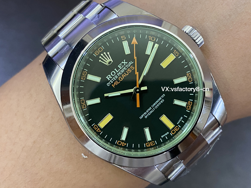 VS厂复刻表劳力士闪电标黑面绿玻璃复刻表采用904L精钢打造表壳,同步正品一致表径达40毫米。