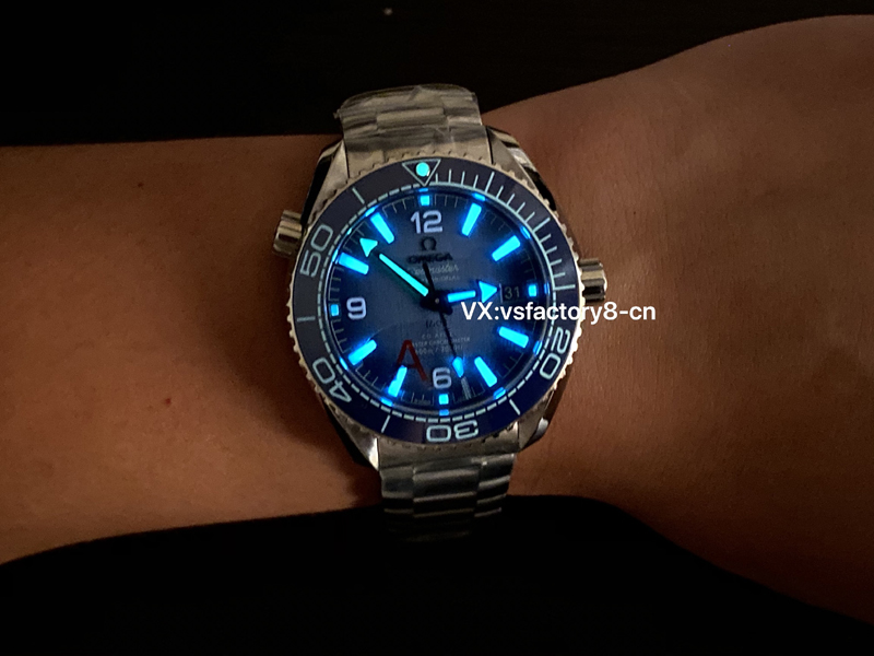4:VS厂欧米茄冰蓝面海马600米复刻表的外观还原设计令人一见倾心,还原了正版一致冰蓝色盘面,做到了原汁原味,表盘上的刻度以及指针按照正品一致冰蓝色工艺锻造,采用了经典的夜光设计,使得在低光环境下也能够清晰读取时间,时标和指针的设计经过精心打磨,强烈的立体感,欧米茄LOGO同时非常立体,盘面细节处理的很到位,复刻还原细节做工属实精湛。