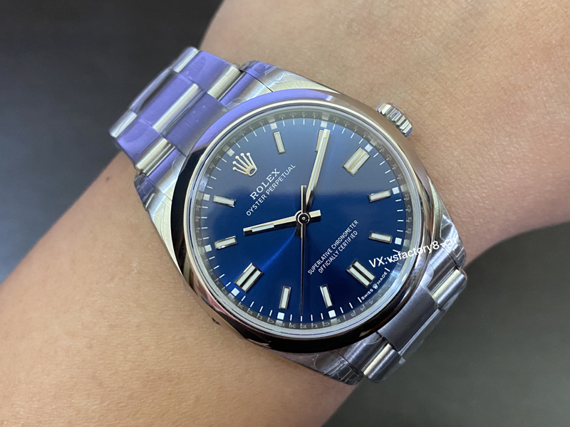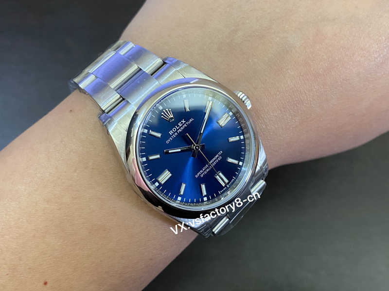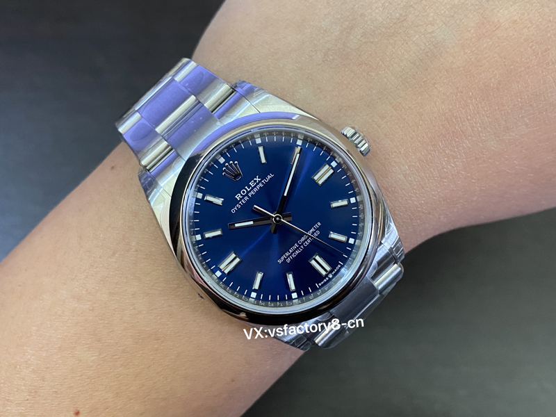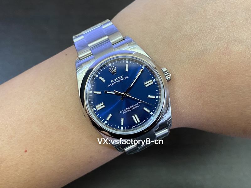 1:VS厂这款劳力士36m蓝面蚝式恒动复刻表的表壳采用904L精钢材质复刻锻造,经过VS厂精湛的打磨与抛光,展现与原版一致亮丽的金属光泽,表壳结构同步原版36mm的表径还原设计,既能展现男性的阳刚之气,也适合女性佩戴,展现出柔和的气质。