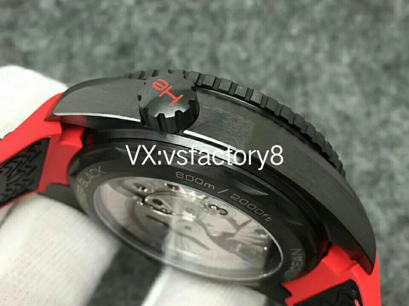 1:VS厂复刻表欧米茄海马600米深海之红同步正品一致45.5mm ,黑色陶瓷表壳,GMT表圈,以及蓝色阿拉伯数字时间标识,黑色表盘,圆弧形双面防反光耐磨损蓝宝石玻璃,表冠材质旋入式表冠,搭载VS厂自产一体自动上弦8906机芯,天然橡胶表带。(时针可单独调时,与正品一致)