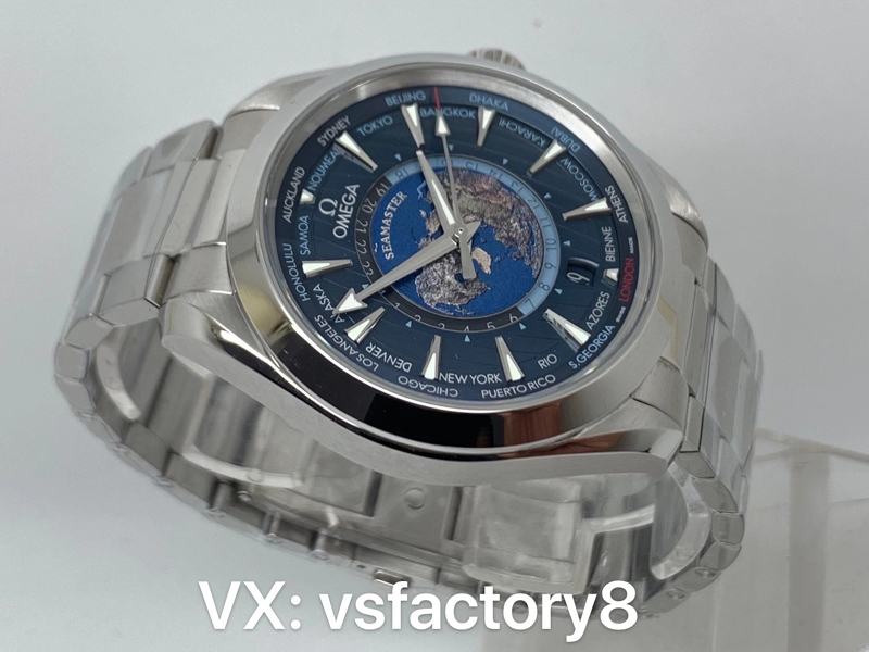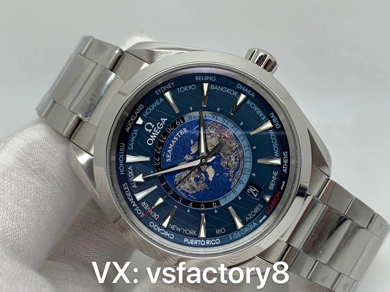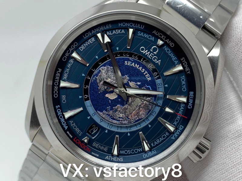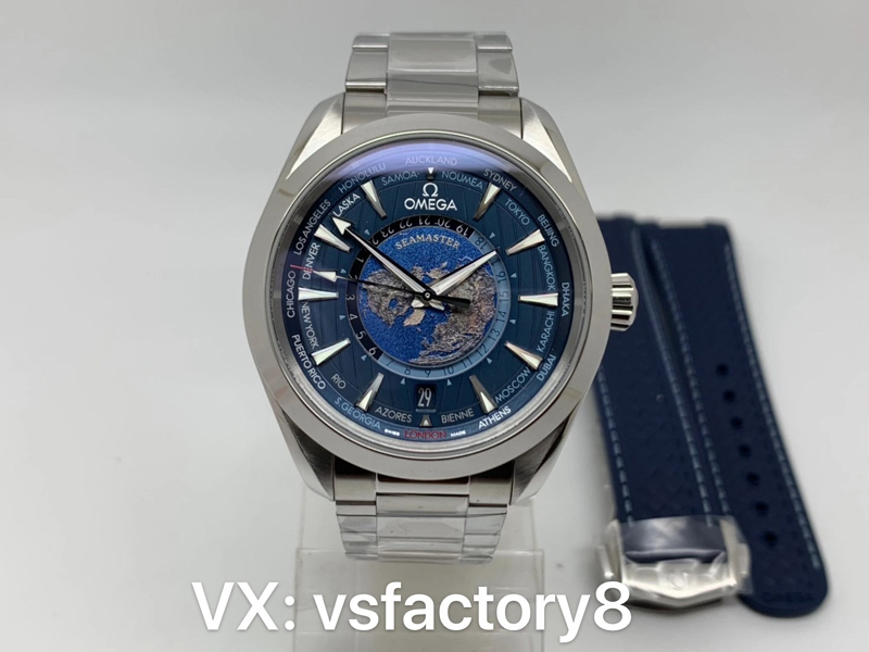 VS厂复刻表欧米茄蓝面世界时海马150米43MM Aqua Terra 世界时复刻腕表。
