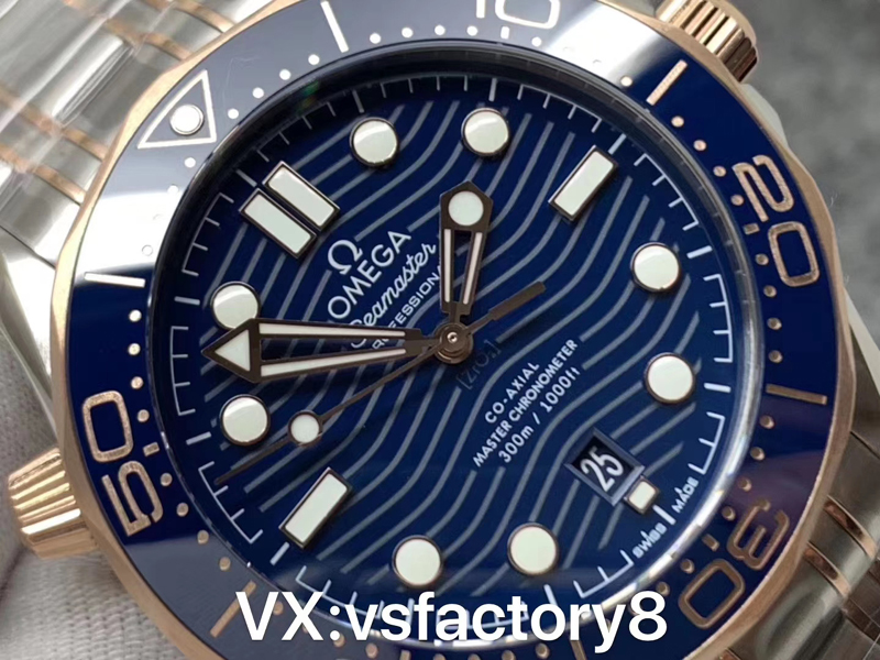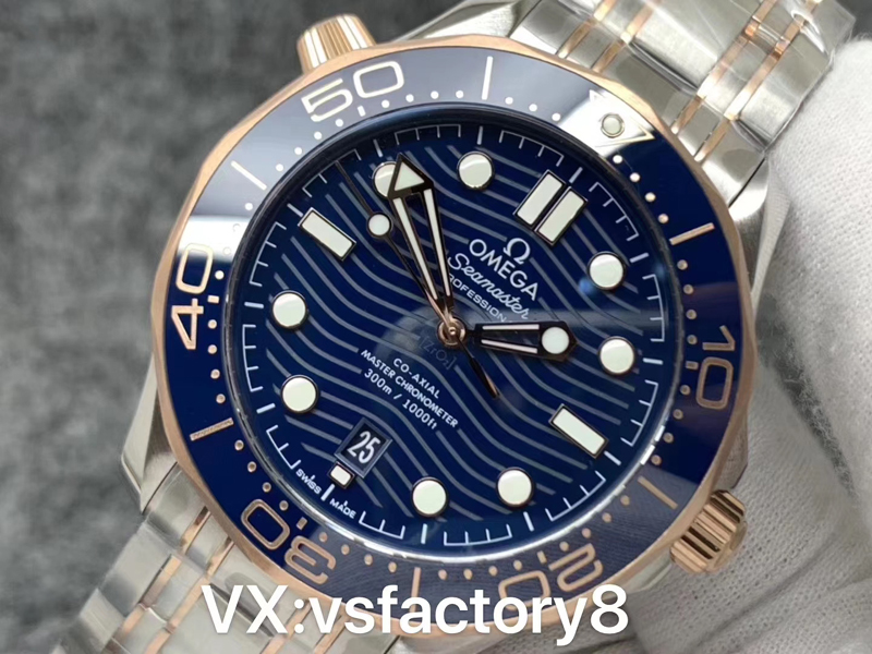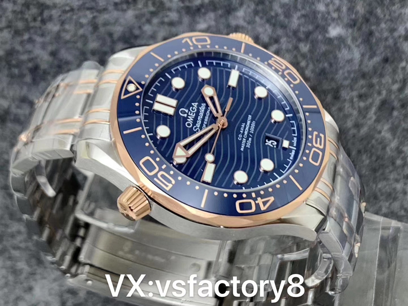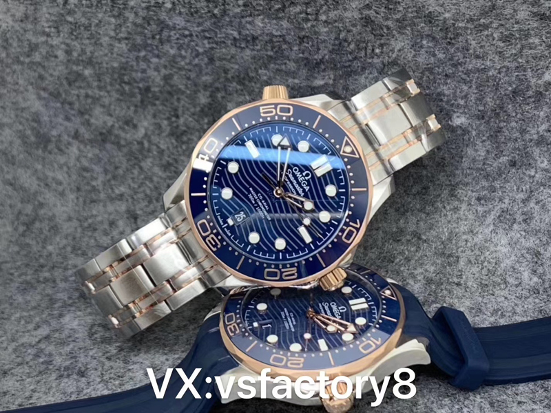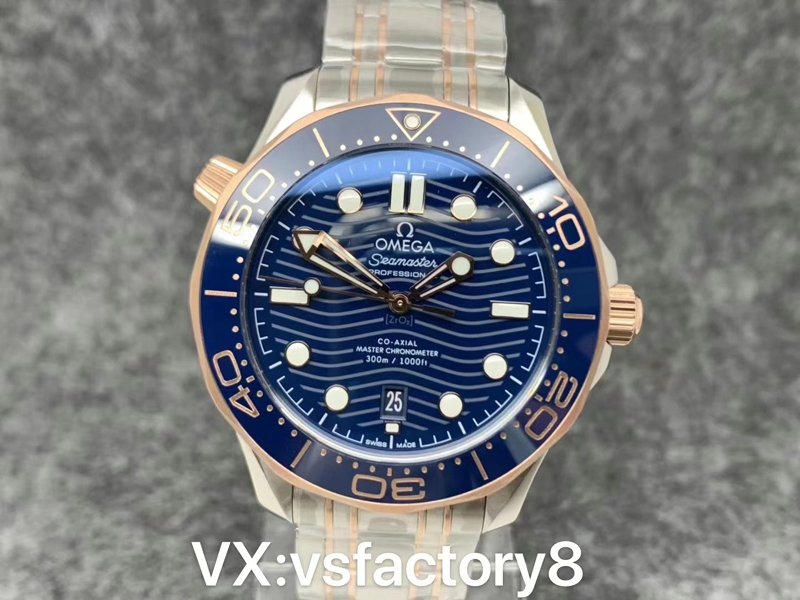 VS厂欧米茄间玫瑰金蓝面海马300米复刻表210.20.42.20.03.002