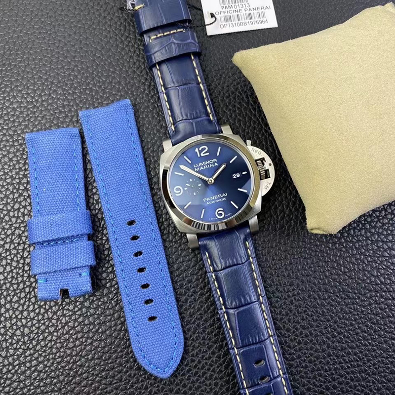VS厂沛纳海PAM1313庐米诺系列复刻表同步原装一致44MM致敬传奇夜70周年,经典延续蓝色三文治放射纹表盘。