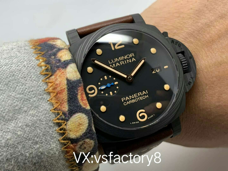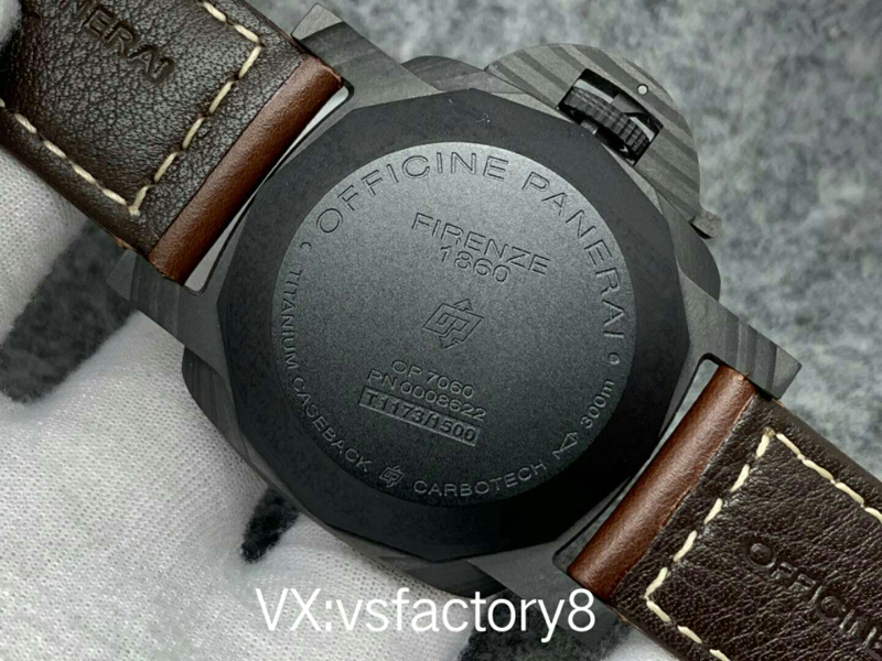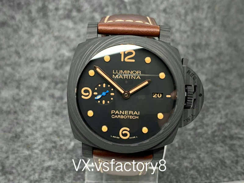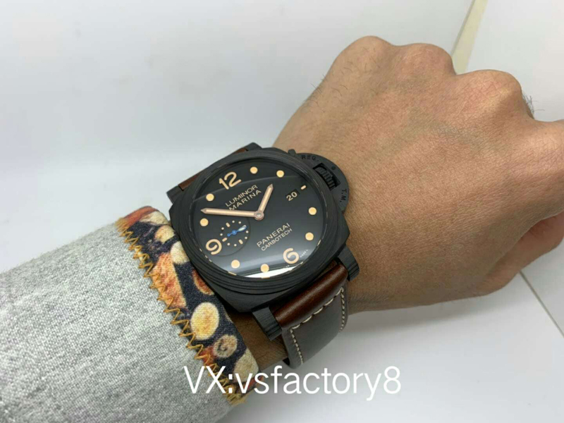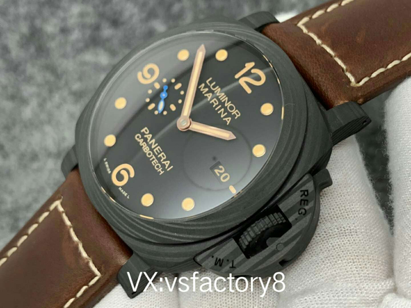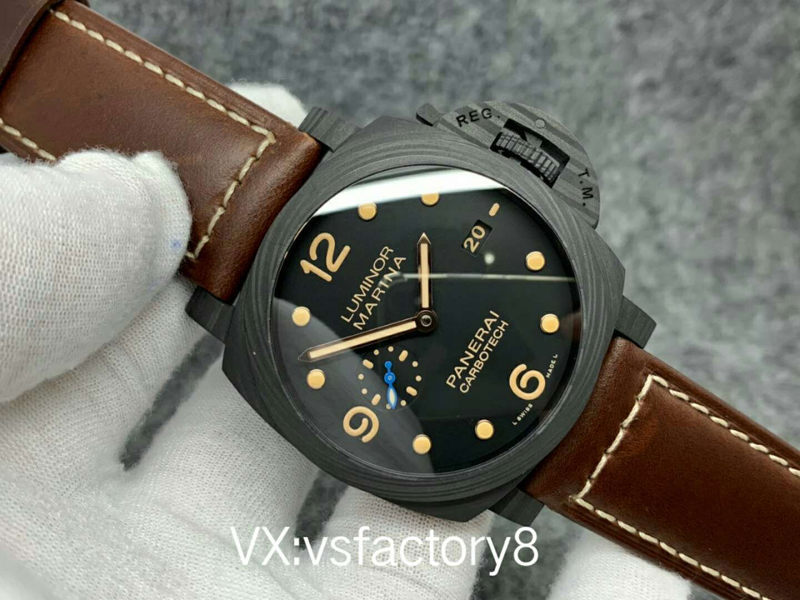 VS厂沛纳海PAM661碳纤维壳,全新表壳工艺,7层碳纤维更为致密,44mm 最新版P.9010自动机械机芯,碳纤维表壳,蓝宝石镜面,夜光表盘和指针,牛皮表带,针扣,防水大于100米!