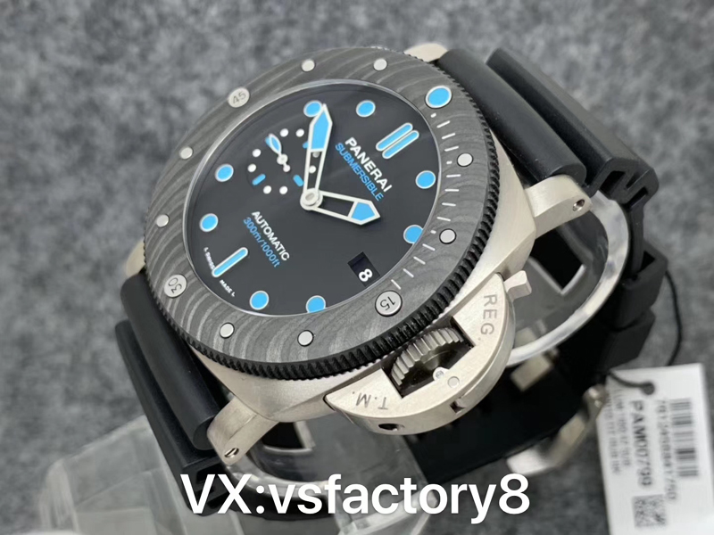 VS厂手表官网新品:VS厂沛纳海PAM00799 ,47mm ,CARBOTECH碳纤维旋转表圈,黑色表盘,蓝宝石玻璃鱼眼,自动上链机械机芯,橡胶表带。