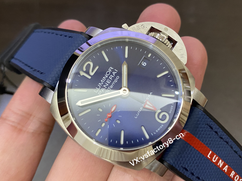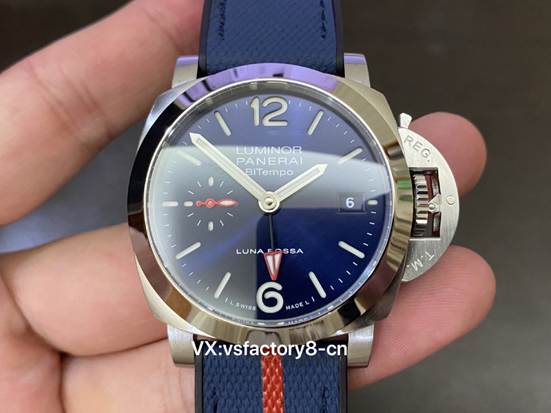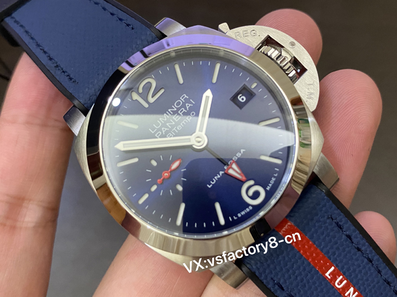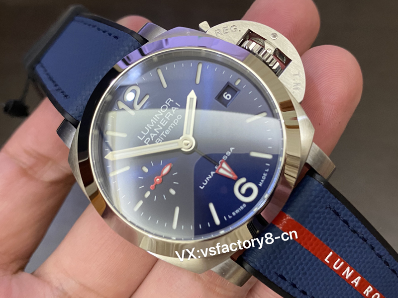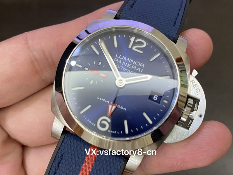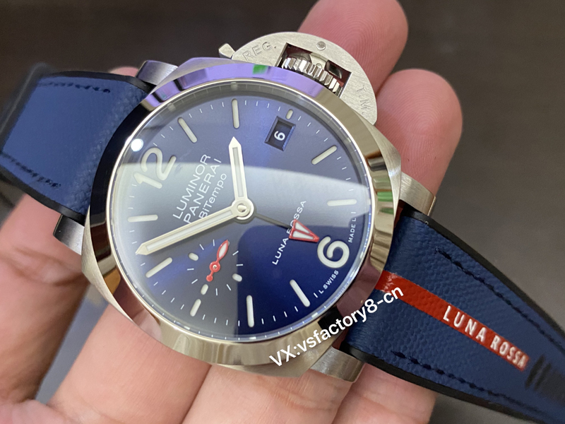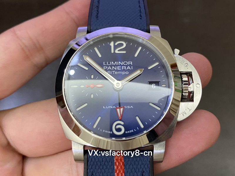 VS厂复刻表沛纳海1404复刻表第二时区的时针尖端采用红色镀层处理,与Luna Rossa船队的船帆颜色巧妙呼应。